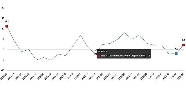 Sanayi üretim endeksi aylık değişimleri(%), Şubat 2026