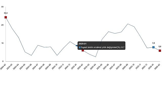 İnşaat üretim endeksi aylık değişimleri(%), Şubat 2026