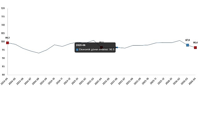 Ekonomik güven endeksi Mart ayında 97,9 iken, Nisan ayında %1,5 oranında azalarak 96,4 değerini aldı.